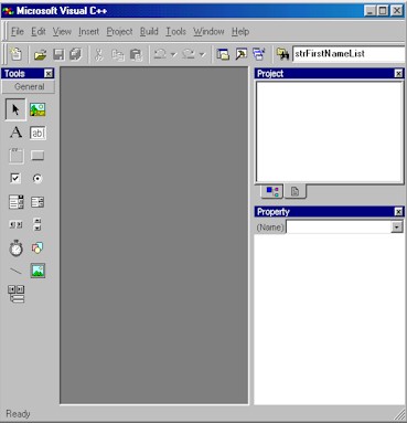 The toolbox, project, and the property windows can be undocked and docked interchangeably on the left and right pane. Docking of these windows on the top and bottom panes are not supported. As the names imply, the toolbox contains icons of RFC controls, that you use in designing a form. The project window displays a list of project elements, like classes, implementation and header files. Property window lets you change the properties of an active form or a control on the form. Like Visual C++ IDE, the project window has two tabs, the left tab shows a list of forms and class modules, while the right tab shows the implementation and header files in the project. If there was no project loaded previously in the Developer Studio, the project and the property list boxes at this stage will look empty. We will discuss later the situation when you switch to RadVC mode with a project previously loaded. . . . . . . . . . GO TO TOP . . . . . . . . . . Creating a new project using RadVC
